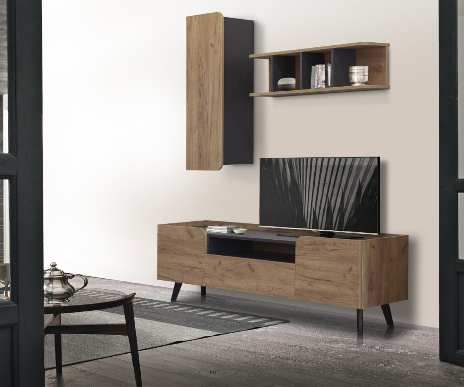 Η σύνθεση σαλονιού είναι ένα έπιπλο πολύ λειτουργικό, κατάλληλο για την τηλεφόραση και τον εξοπλισμό της (Home Cinema, Playstation, DVD κ.α.). Αποτελείται από συρτάρια, ράφια και βιτρίνες προσφέροντας τη δυνατότητα να αξιοποιήσετε κάθε εκατοστό του χώρου αλλά ταυτόχρονα διακοσμεί με μοναδικό στυλ το σαλόνι σας.